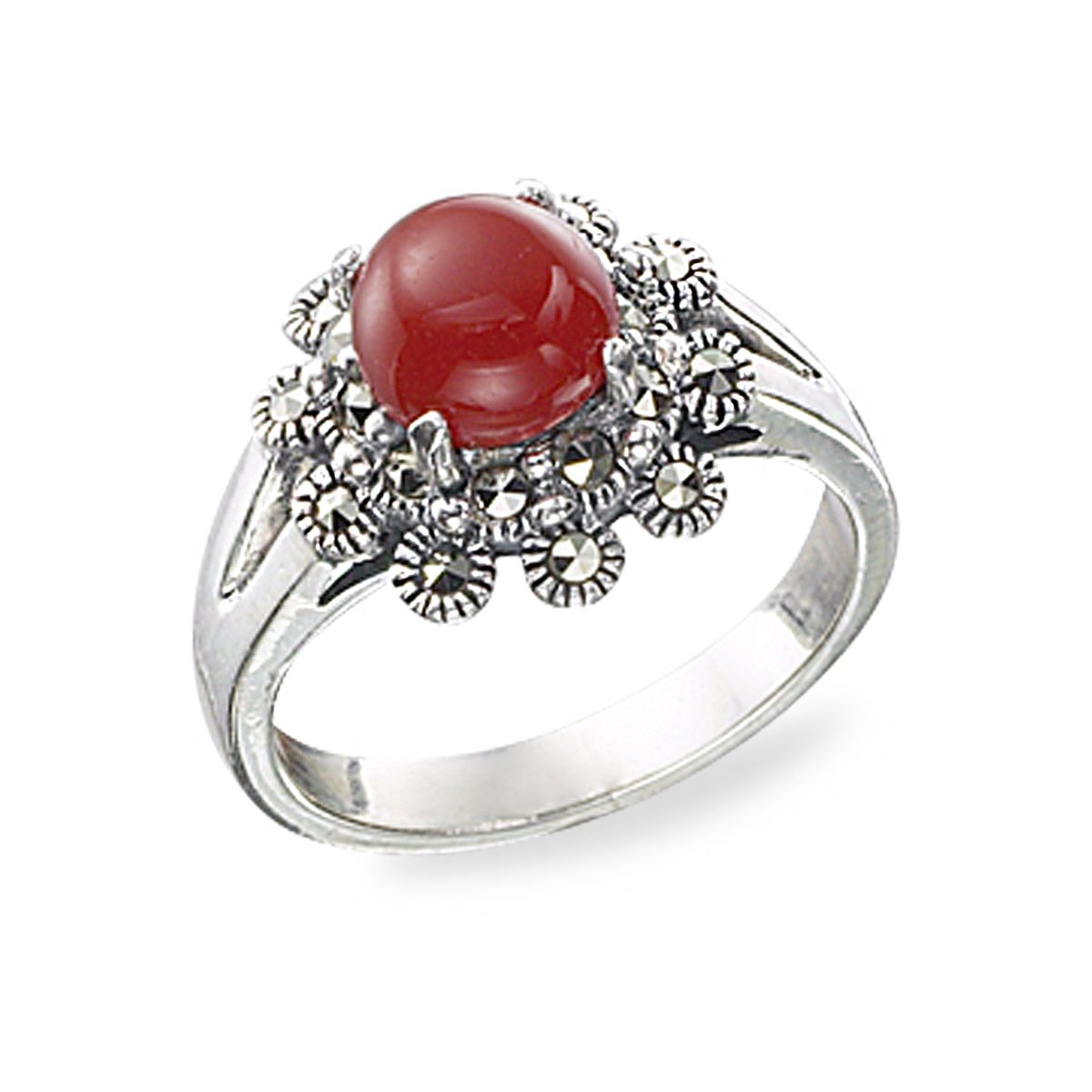 Quality and attention to detail define the Classic Round Marcasite Flower Ring. Made from durable and high-quality materials, the ring displays intricate marcasite stones arranged beautifully to resemble a blooming flower. The glossy silver finish complements the marcasite accents, creating a radiant piece that captures light and draws attention effortlessly. Its lightweight yet durable design ensures comfortability during wear without compromising on style.